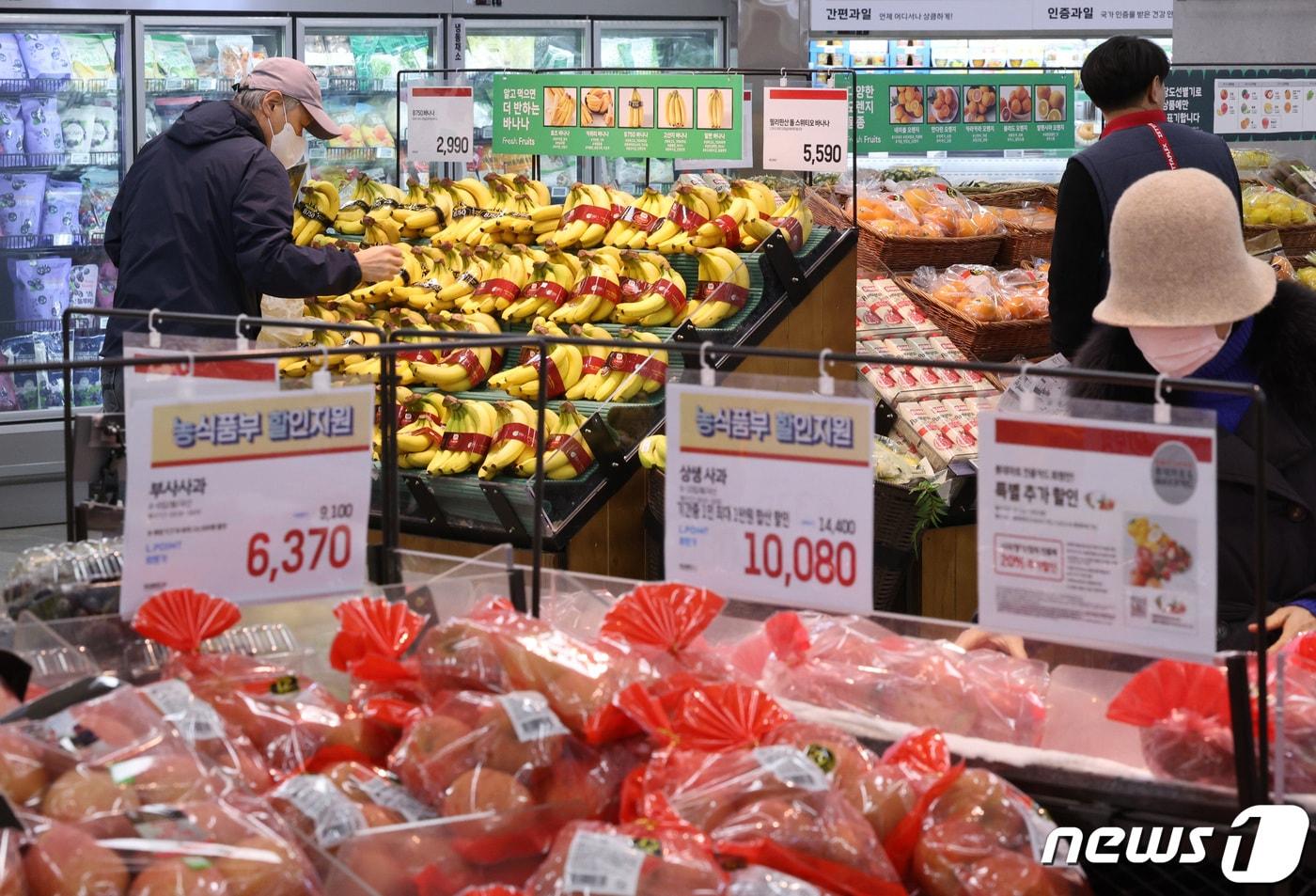 사과 소매가격, 1주일 전보다 13% 하락…배는 18% 하락도매가격은 소폭 상승세 계속…소매가격 상승세 전환 우려서울의 한 대형마트에서 바나나를 고르는 시민들의 모습. 2024.3.20/뉴스1 ⓒ News1 신웅수 기자관련 키워드사과배가격소매도매윤석열농산물특단이호승 기자 경민정 "한동훈 제명, 야비해…尹 사형구형을 韓 사형으로 덮은 것"[팩트앤뷰]DOCTORS PGA, 현대면세점 입점…유통채널 확장 추진한다관련 기사농식품부, 매주 차관 주재 농축산물 수급 점검…"수입 신선란 2월 공급"롯데마트, 고물가 장기화에 가성비 선물세트 사전예약 판매이마트, '자연주의' 선물세트 20% 확대…가격도 최대 35%↓727조 '슈퍼예산' 투입해 성장률 2.0% 달성…반도체 2강·AI 3강 도약(종합)정부, 올해 물가 2.1% 전망……쌀·콩·계란 등 먹거리 안정 총력