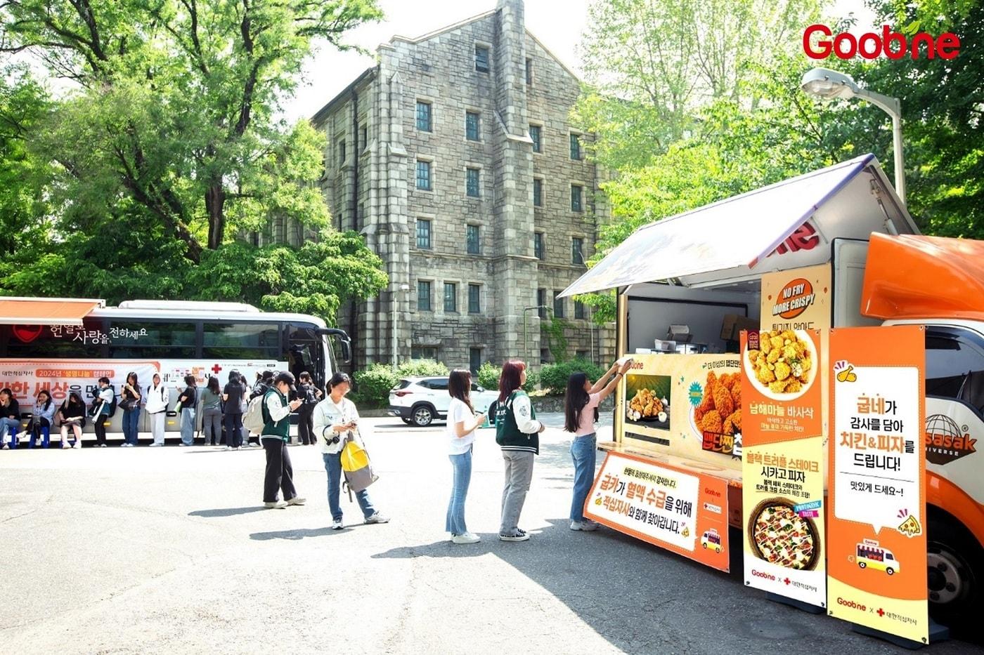'굽카' 통해 헌혈자에 치킨·피자 제공…헌혈 참여 높인 공로이화여대 학생들이 헌혈을 마치고 ‘굽카’에서 치킨과 피자를 제공받고 있다.(지앤푸드 제공)관련 키워드굽네지앤푸드이형진 기자 식품산업協, 한중 식품안전협력 MOU 체결에 "적극 환영"CJ프레시웨이, 3년간 중소형 외식고객사 50곳 홍보 지원관련 기사굽네치킨, 미국 휴스턴 지역에 텍사스 2호점 '케이티점' 오픈"순금 10돈 걸렸다"…굽네치킨, 추추 치킨 스테이크 이벤트 진행굽네치킨, 국민대 조형대학과 맞손…"문화·예술 ESG 확대"굽네치킨, 마닐라 라스 피냐스 지역에 필리핀 2호점 오픈"연말 홈파티에 딱"…굽네치킨, 신제품 추추 치킨 스테이크 출시