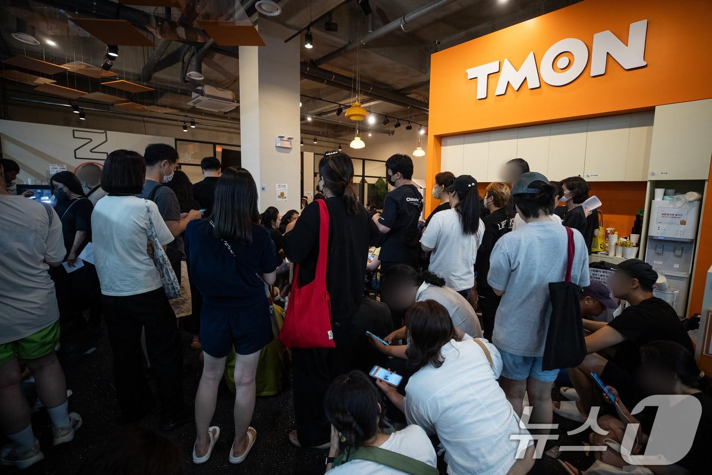26일 서울 강남구 티몬 신사옥에서 '판매 대금 미정산 사태'로 피해를 입은 소비자들이 환불 현장 접수를 위해 기다리고 있다. 앞서 지난 25일 위메프에 이어 환불을 요구하는 소비자들이 티몬 본사 점거에 들어갔으며 26일 새벽 권도완 티몬 운영사업본부장의 환불 입장이 표명된 후 티몬이 환불 현장 접수 및 환불을 진행하고 있는 것으로 알려졌다. 2024.7.26/뉴스1 ⓒ News1 유승관 기자