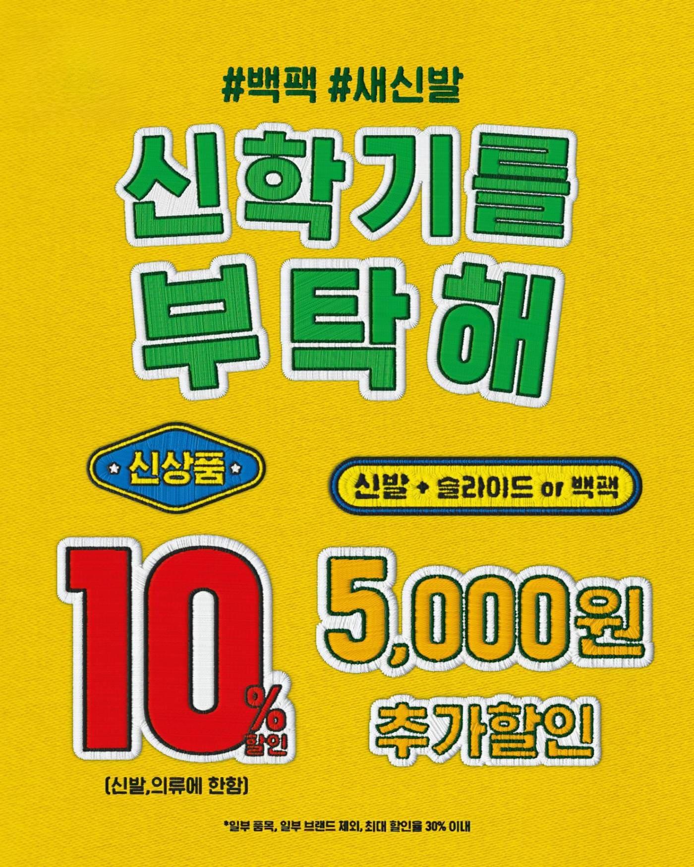 신학기 특별 할인부터 앱 전용 100% 당첨 이벤트까지 '신학기를 부탁해' 프로모션.(ABC마트제공)관련 키워드ABC마트김진희 기자 젠틀몬스터 "세계 4대 패션 도시 진출…올해도 글로벌 확장"한일정상회담서 포착된 李 대통령 '운동화'…또 완판 되나관련 기사ABC마트, 새해 맞이 기빙플러스 바자회에 4억 상당 신발 기부영하 추위에도 성수동은 '활기'…가볼 만한 패션·뷰티 팝업[르포] 성수서 즐기는 겨울 캠핑…ABC마트·아디다스 협업 에디션ABC마트, '지역사회공헌 인정기업' 5년 연속 선정ABC마트, 성수동서 '나의 N번째 신상' 팝업 오픈