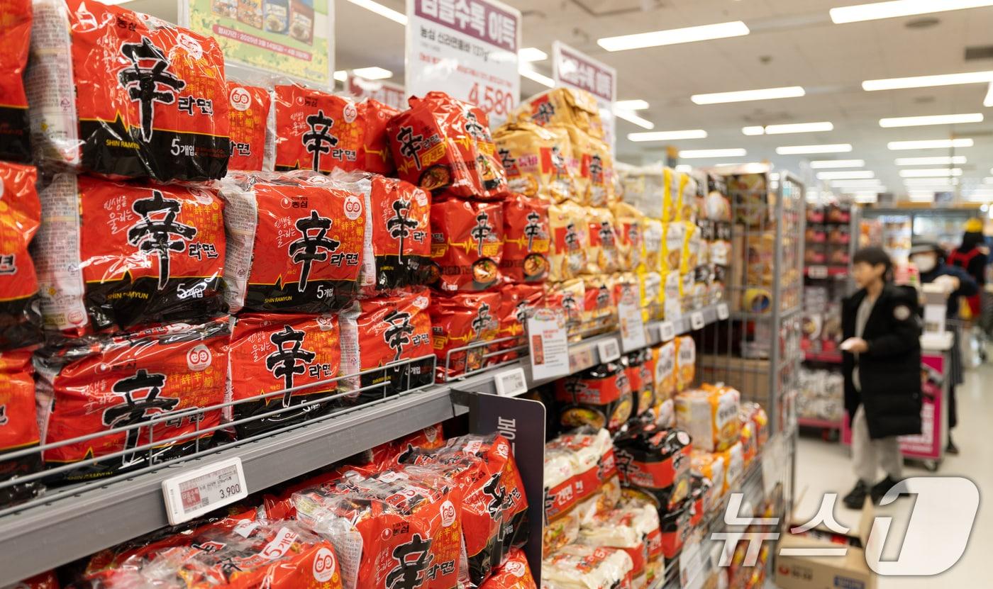 오뚜기, 진라면 등 가격 7.5% 인상…농심, 라면·스낵류 7.2% 올라환율 상승·원자재 가격 인상 영향…삼양식품은 가격 인상 검토 안해지난 16일 서울 시내의 한 대형 마트에 라면이 진열돼 있다. 2025.3.16/뉴스1 ⓒ News1 이승배 기자관련 키워드삼양식품농심오뚜기신라면진라면불닭배지윤 기자 가맹점주협의회 "215억 차액가맹금 부당이득 반환 판결 환영"한국피자헛 "대법 판결 존중…경영정상화 차질 없이 이행"관련 기사유통가 실적 희비…뷰티 날개·패션 보릿고개국내만으로는 좁다…병오년 식품·외식업계 키워드는 '글로벌'[2026 터닝 포인트] 'K-브랜드' 황금기…글로벌 시장을 움직이는 'K-브랜드'올해 주요 식품사 '4조 클럽' 5곳…삼양식품 '2조 클럽' 입성 가시권[2025 유통 결산]⑤ 잘나가는 K-푸드 '케데헌' 열풍에 올해도 액셀
