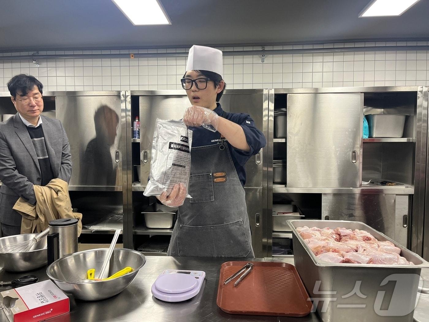 전국 BBQ 가맹점주 교육 담당하는 치킨대학…4개월간 리모델링 거쳐 새단장치킨 레시피만? 고객·매출 관리까지 배우는 BBQ식 창업 교육 전영수 BBQ 경영개발원 창업교육팀 강사가 27일 경기도 이천시 BBQ 치킨대학에서 치킨 레시피를 설명하고 있다. BBQ 황금올리브에 쓰이는 10호 닭. BBQ 황금올리브 치킨을 튀기기 전 생닭을 물반죽에 버무리고 있다. BBQ 황금올리브 치킨이 튀겨지고 있다.BBQ 예비 가맹점주들이 실습을 하고 있다.관련 키워드BBQ치킨치킨대학BBQ치킨대학배지윤 기자 홈파티 시장 달군다…크리스마스 앞두고 와인 시장 후끈 [이번주 뉴Eat템]먹거리 중심 체질 탈피…식품사 신사업 키워드는 '바이오'관련 기사BBQ, 외국인 유학생 대상 치킨캠프 진행…"K-푸드 제대로 알린다"BBQ, 11월 착한기부 통해 1000마리 나눔…"선한 영향력 확대""미래 성장 이끌 인재 확보"…BBQ, 2025년 하반기 신입사원 공개채용 실시BBQ, 사우스 캐롤라이나 신규 매장 오픈…美 33번째주 진출BBQ, 착한기부로 올해만 치킨 누적 1만 마리 기부
