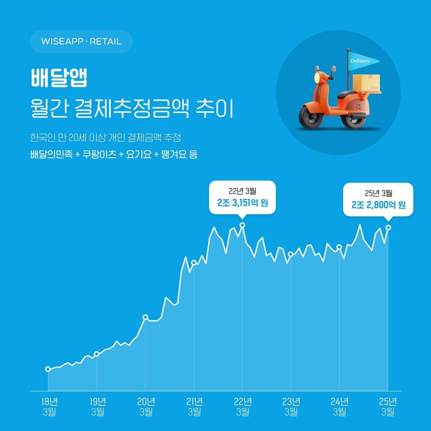 3월 배달앱 결제액 2조 2800억…2701만명 이용종합몰 앱 순위에선 쿠팡 독주 속 中 알리·테무 선방(와이즈앱·리테일 제공)관련 키워드배달의민족쿠팡요기요쿠팡이츠알리테무김명신 기자 김병주 회장 구속영장 기각에…MBK·홈플러스 "현명한 결정 감사"제주에도 辛라면 깃발…농심, 라면 체험 공간 '라면 뮤지엄' 오픈관련 기사월 평균 3.4조 시켰다…거리두기 때보다 더 커진 '40조 배달 시장''탈팡족' 잡기 나선 요기요…'무한적립' 출시 효과 "대박 조짐"[2025 유통 결산]⑥ 원가 압박·고환율에 흔들린 밥상 물가[2025 유통 결산]③ 물가 폭등 속 배달앱 규제 강화…법제화 여부 주목배달플랫폼 이용 수수료 16.9~29.3%…점주 95% '부담된다'