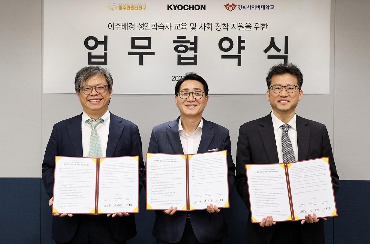 경희사이버대학교, (사)이주민센터 친구와 협약 체결지난 4일 진행된 업무협악식에 참석한 (좌측부터) 윤영환 (사)이주민센터 친구 대표, 강창동 교촌에프앤비 커뮤니케이션 부문장, 신봉섭 경희사이버대학교 부총장이 기념촬영을 하고 있다. (교촌에프앤비 제공)관련 키워드교촌치킨김명신 기자 'D-10' 홈플러스 회생 악화일로…높아지는 청산 가능성신세계면세점, 임직원 참여 업사이클링 봉사…친환경 필통 제작·기부관련 기사교촌치킨, 앱 최고 등급 위한 '킹 클럽 보너스+' 이벤트 진행교촌에프앤비, 치킨업계 최초 주 6일 배송 전국 유통망 구축'전통주' 진심…교촌치킨, 발효공방 새 대표 20여년 경력 연구원 앉혀오늘부터 '치킨 중량 표시제' 시행…업계 "쌓이는 규제 부담"배달의민족, '배민푸드페스타' 진행…4만개 매장 참여
