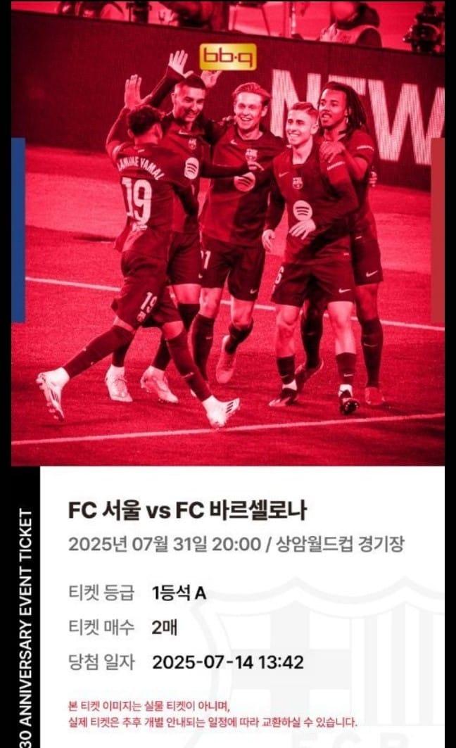 FC바르셀로나 3만장 이벤트…치킨 13마리·약 30여만원 사용 11위 안착치킨 1마리당 응모권·오프라인 스크래치 추첨권 도전 지속(BBQ 앱 당첨 화면 갈무리, 함께 첨부된 바코드는 삭제했다.)<뉴스1> 산업 2부 기자들이 직접 주문한 BBQ 치킨모음./ 뉴스1 ⓒ News1BBQ 앱 내 당첨 확인 내용과 안내 문자(BBQ앱 등 갈무리)윤홍근 제너시스BBQ 그룹 회장이 '2025 FC바르셀로나 아시아투어 서울 매치' 후원을 기자간담회를 통해 발표하고 있다.(제너시스BBQ 제공)관련 키워드BBQ바르셀로나이형진 기자 식품 원재료 안정화하고 있지만…업계 "가격 인하는 시기상조"골든블루, 붉은 말의 해 한정판 '카발란 솔리스트 마데이라 캐스크' 출시관련 기사KBO 흥행에 컬래버레이션 식품사 매출도 '쑥'다가오는 가을야구· 식지 않는 K리그 열기…F&B 스포츠 마케팅 '절정'연예인 넘어 스포츠까지…'하이볼 마케팅' 전방위 확장BBQ, 창사 30주년 기념 '5만원 쿠폰팩' 제공 이벤트 진행FC바르샤 페드리·레반도프스키가 'BBQ 청계광장점'에 떴다…1000여명 팬 몰려