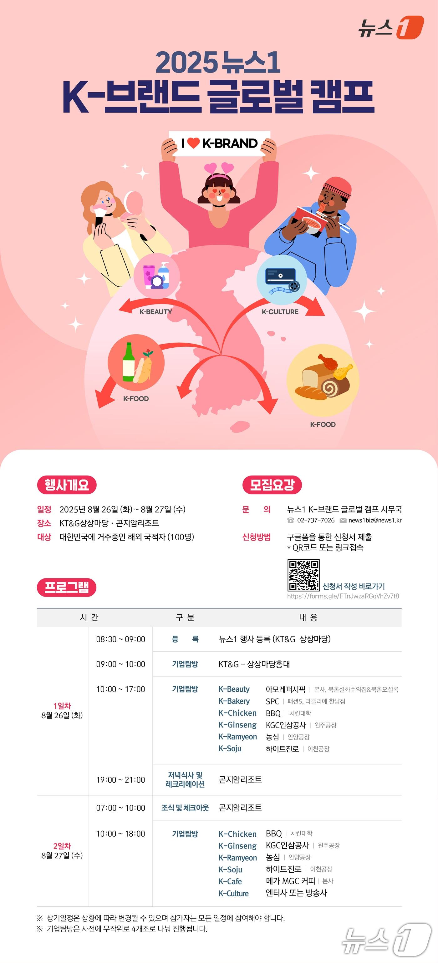 8월 26~27일 한국 체류 외국인 대상으로 열려, 20일 마감BBQ·인삼공사·하이트진로·농심·SPC·아모레퍼시픽 등 방문뉴스1 'K-브랜드 글로벌 캠프'뉴스1 'K-브랜드 글로벌 캠프'관련 키워드K-브랜드 글로벌 캠프뉴스1관련 기사27개국 청년, 한국 푸드·뷰티·컬처 경험…K-브랜드에 흠뻑 취하다(종합)외국 청년들, 메가MGC커피 본사 찾았다…'컵빙수' 인기 비결 직접 체험"K-기술력 놀랍고 짜릿해요"…롯데월드타워 찾아 연이은 감탄"신라면의 고향,"…농심 안양공장 찾은 외국 청년들[K-브랜드 글로벌 캠프]100년 역사에 유학생도 감탄…'K-소주 심장' 하이트진로 이천공장