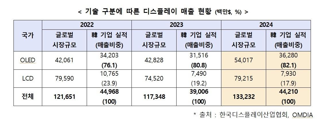 고부가 OLED 중심 매출 성장…점유율 0.1%p 하락 방어 트럼프 관세 정책 '변수'…"디스플레이 특별법 마련해야"