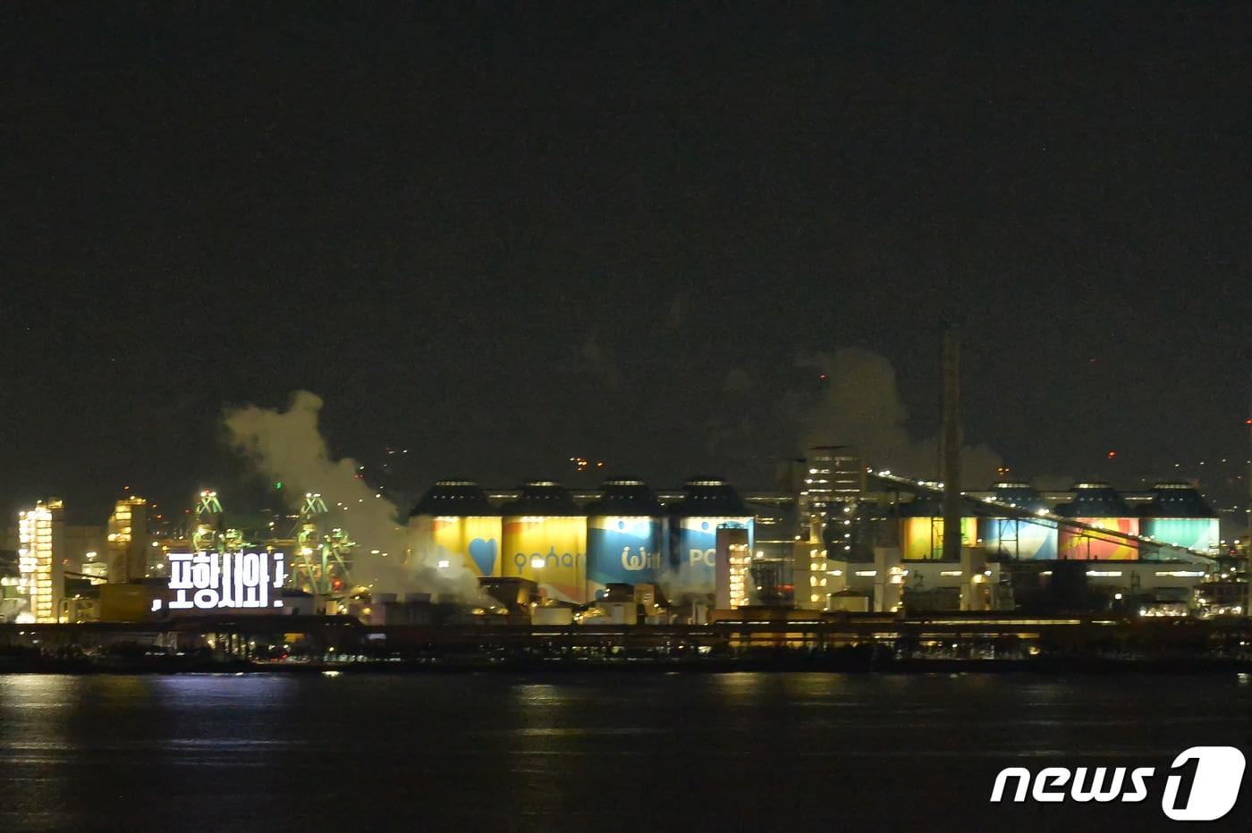 지난 10일 오후 포스코 포항제철소가 지난해 9월 태풍 침수 피해로 운영을 중단했던 소통보드를 본격 가동했다..(사진은 소통보드 화면을 레이어로 합성) 2023.2.10/뉴스1 ⓒ News1 최창호 기자
