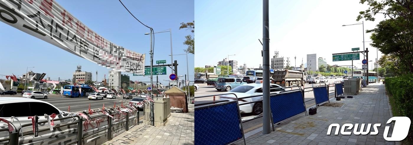 서초구청의 행정대집행에 따른 서울 서초구 양재동 현대차그룹 사옥 주변 전후 모습.(독자 제공)ⓒ 뉴스1