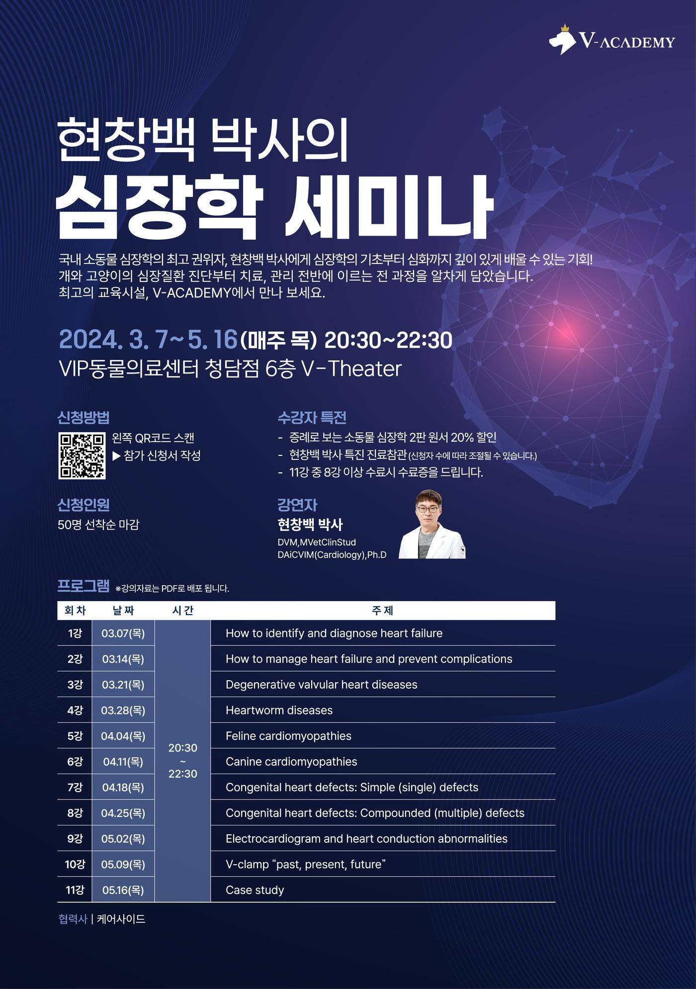 3월 7일부터 VIP동물의료센터 청담점 진행현창백 박사의 소동물 심장학 세미나 포스터(VIP동물의료그룹 제공) ⓒ 뉴스1관련 키워드교육동물반려동물수의사최서윤 동물문화전문기자 연구 기반 자연식 브랜드 '레이앤이본'…7주년 맞이 감사 이벤트"반려동물 사료는 과학"…우리와, 국내 최대 펫푸드 연구소 개소관련 기사이응우 계룡시장 "국방산업 혁신·세계적 軍문화도시 도약 박차"한국고양이수의사회, 회장 이취임식…"임상 발전·인식 향상 노력""수의계 위해 한평생 바쳐…30년 투쟁의 역사, 결과로 증명하겠다""원헬스 선도하는 정치력 필요…강력한 수의사회 만들겠다"반려동물 보건과 생명과학의 만남…호남대–DGIST 연구 인턴십 진행