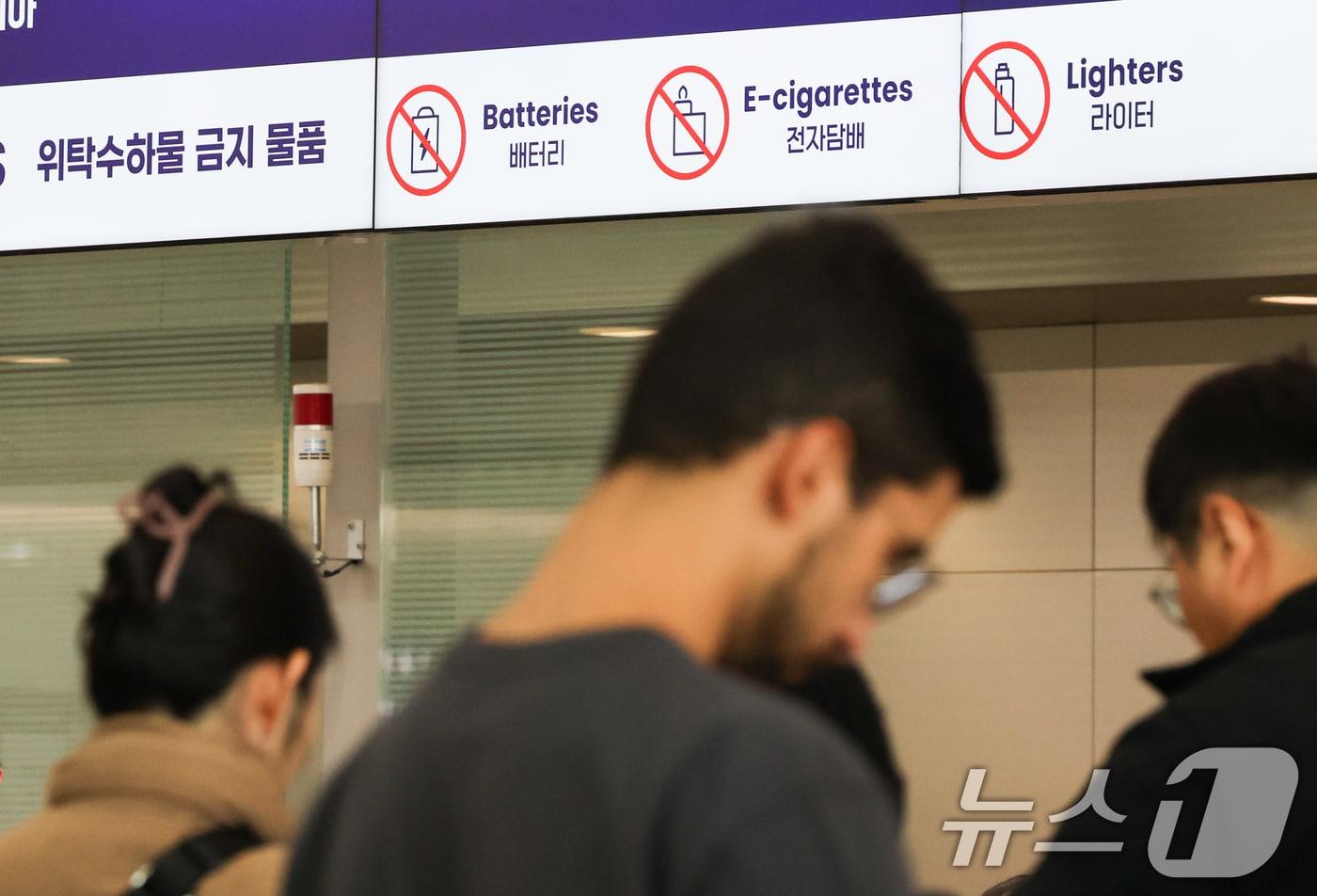 에어부산, 7일부터 승객 보조배터리 유무 확인 방침법적근거 모호, 승객에 확인하는 방식…실효성 의문4일 인천국제공항 제1터미널 출국장에 설치된 위탁 수하물 금지 물품을 안내하고 있다. 2025.2.4/뉴스1 ⓒ News1 허경 기자관련 키워드에어부산대한항공아시아나항공금준혁 기자 '코스피 5천 넘자' 법사위 3차 상법 '시동'…"3월 주총 전 처리"민주, 1인1표+예비경선 당원 비율 확대…정청래 연임 포석?관련 기사항공업계 4분기 실적도 '흐림'…고환율에 공급석 규제까지 '발목'항공업계 "보조배터리 분실물 즉시 폐기"…기내 사용 금지도 확산'4파전' 자카르타 노선, 티웨이 품으로…대형기에 갈렸다'알짜' 자카르타 노선 티웨이 품으로…대한항공 운수권 재배분조원태 한진 회장 "경쟁 상대 글로벌에…통합 대한항공 한 몸처럼"