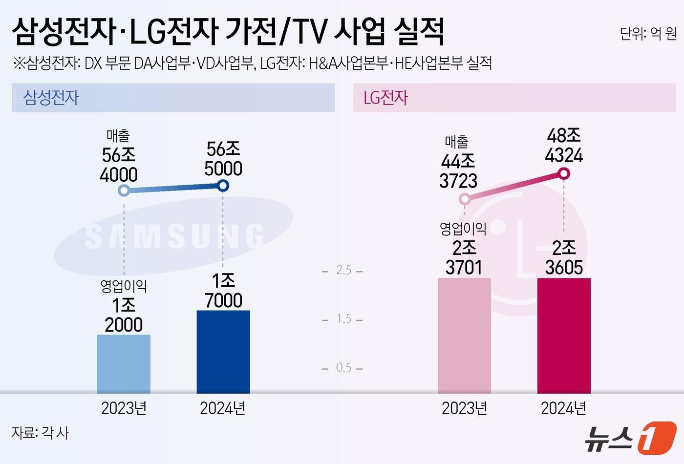 가전·TV LG 외형 성장, 삼성 제자리…수익성 확보 관건삼성D, 모바일 부진 영업익 감소…손실 줄인 LGD, 올해 흑자 목표ⓒ News1 김지영 디자이너14일 서울 강남구 코엑스에서 열린 '2024 한국디스플레이산업 전시회'에 마련된 LG 디스플레이 부스를 찾은 관람객들이 전시된 상품에 대한 정보를 안내하는 투명 OLED 디스플레이를 살펴보고 있다. 2024.8.14/뉴스1 ⓒ News1 민경석 기자관련 키워드LG디스플레이LG전자삼성전자박주평 기자 신학철 "친환경·고부가 전환, 화학산업 50년 번영 유일한 길""이천 쌀집 안부럽다"…삼성 반도체, 연봉 47% 성과급으로 받는다관련 기사벤츠·엔비디아 '자율주행' 동맹…삼성·LG 전장사업 기회 열린다'CES서 확인한 로봇 시대'…삼성·LGD, OLED로 시장 주도권 노린다ETAMU 텍사스주립대 토플면제 ELC 패스웨이, 글로벌 기업 취업 성과[동행취재]'차이나쇼크 2.0' 시작…삼성, 전시장 대신 호텔로 왜?中 공세·美 관세에 가전 '한파'…LG 9년 만에 적자, 삼성도 고전