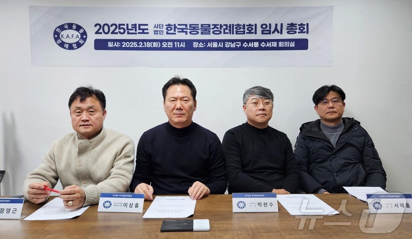 2025년 제1차 임시총회 열고 선임안 의결한국동물장례협회가 18일 서울 강남구 수서재에서 임시총회를 열고 신임 회장에 이상흥 펫포레스트 대표(왼쪽 두 번째)를 선임했다. ⓒ 뉴스1관련 키워드펫피플동물반려동물동물장례최서윤 동물문화전문기자 고양이수의사회, 2월28일 학술대회…내시경실습·냥학퀴즈왕 진행베트남 간 경복대·국경없는수의사회…'K-반려동물 복지' 전파해관련 기사"수의계 위해 한평생 바쳐…30년 투쟁의 역사, 결과로 증명하겠다""원헬스 선도하는 정치력 필요…강력한 수의사회 만들겠다"삼척서 청주까지…이사 간 보호자도 다시 찾는 1인 동물병원 비결물리고 뒷발에 차여 속앓이하는 사람들…"수의사가 먼저인 이유"친절한 동물농장 수의사, 병원 접고 올인…"임상 환경 살리려고"