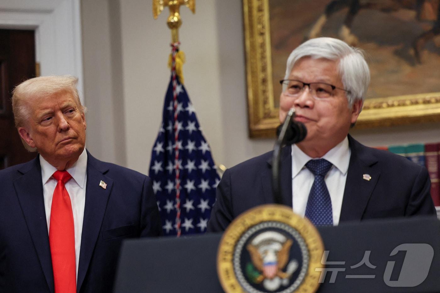 미국 업체 4곳에 투자 제안 보도 나와도널드 트럼프 미국 대통령이 3일(현지시간) 워싱턴 백악관에서 C.C. 웨이 대만 TSMC CEO의 반도체 생산설비 투자 계획 발표를 듣고 있다. 2025.03.04 ⓒ 로이터=뉴스1 ⓒ News1 우동명 기자박기호 기자 이재용 등 삼성家, 이건희 컬렉션 美 갈라 행사 총출동삼성전자 성과급 기준 변경, 내부 갈등·주주 불만 '역효과' 우려