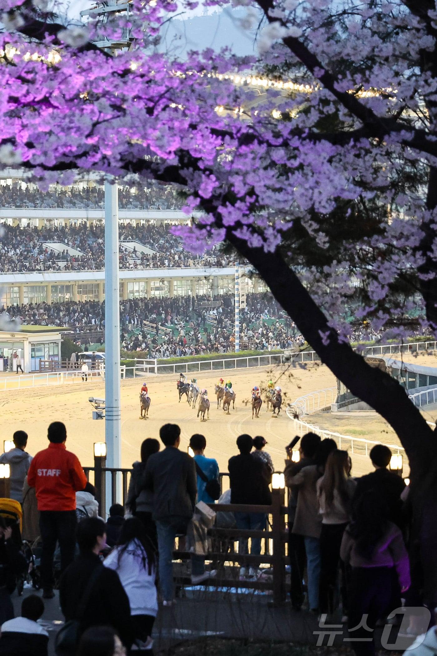 한국마사회 렛츠런파크 벚꽃 축제 13일까지 진행말 테마 포토존·야경 돋보이는 벚꽃길 눈길…야간 경마지난해 진행됐던 렛츠런파크 서울의 벚꽃 축제의 야간 풍경. (한국마사회 제공)경기 과천시 렛츠런파크 서울에서 기수들이 만개한 벚꽃길 아래로 기마 퍼레이드를 선보이고 있다. (자료사진) 2023.4.2/뉴스1 ⓒ News1 김영운 기자2024년 렛츠런파크 서울서 펼쳐졌던 벚꽃 축제의 모습. (한국마사회 제공)2일 오후 경기 과천시 렛츠런파크 서울에서 기수들이 만개한 벚꽃길 아래로 기마 퍼레이드를 선보이고 있다. 2023.4.2/뉴스1 ⓒ News1 김영운 기자관련 키워드한국마사회벚꽃축제렛츠런파크야간경마말멍이재상 기자 한성숙 장관 "회복 넘어 성장으로, 중소·소상공인 사다리 복원"화이트스캔, 고용노동부와 손잡고 AI 기반 노동 사각지대 해소나서관련 기사"과천 빵지순례 오세요" 렛츠런파크서울, 과천맛집 팝업 스토어 열어2000승 올린 문세영 기수와 함께하는 팬미팅 행사 개최사감위-마사회-사행산업기관 합동 '불법도박 예방 캠페인' 실시렛츠런파크 서울, 주말 우천 예보에 따른 '벚꽃축제' 일정 조정산불 관련 국가재난 여파…렛츠런파크 서울 벚꽃축제 축소 시행