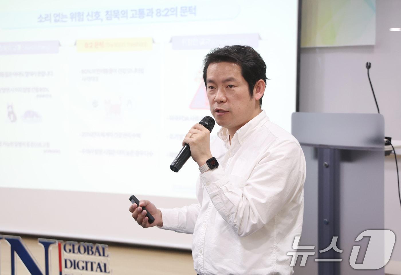 김대용 더리틀캣 대표 25일 오후 경기 성남시 분당구 판교스타트업캠퍼스 글로벌디지털혁신네트워크 대회의실에서 열린 '반려동물 산업 육성 협의회' 제12회 IR(기업설명회)데이에서 기업 발표를 하고 있다. 2025.4.25/뉴스1 ⓒ News1 김영운 기자관련 키워드반려동물ir반려동물ir데이반려동물리틀캣최서윤 동물문화전문기자 손성일 경기도수의사회장 당선인, 인수위원장에 김태융 위촉한국고양이수의사회, 회장 이취임식…"임상 발전·인식 향상 노력"한송아 기자 "안락사 말고 길은 없나요"…계약 끝난 시 보호소에 남은 동물들한국고양이수의사회, 회장 이취임식…"임상 발전·인식 향상 노력"관련 기사반려동물 당뇨·비만 신약 도전…알엑스바이오, 보증·투자 동시 확보"사우디 전량 수입 희망"…펫라이즈 'K-배변봉투' 글로벌 관심 집중"가능성 무궁무진"…반려동물 IR 데이, 스타트업 발굴 성과 조명반려견 골관절염 공략…라제온, 근적외선 기반 통증 완화 기술 소개"AI가 반려견 숨·심박 읽는다"…케어식스, 생체신호 웨어러블 공개