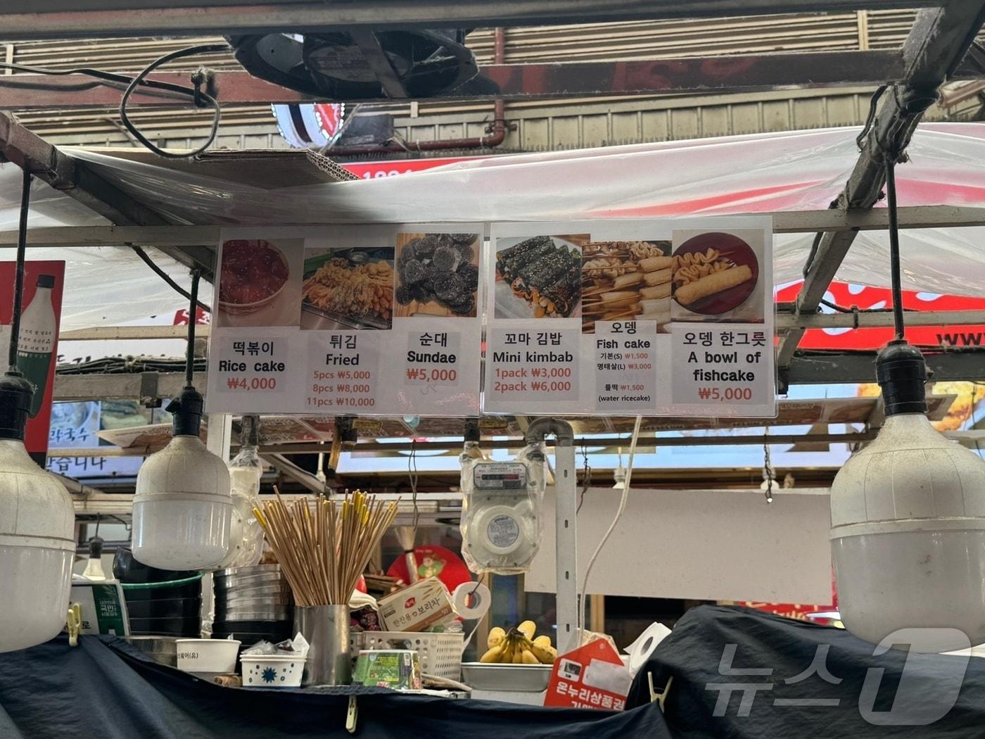 외국인 관광객들을 위해 메뉴 이름과 가격을 영어로 안내하는 광장시장의 한 분식집 ⓒ News1 김형준 기자