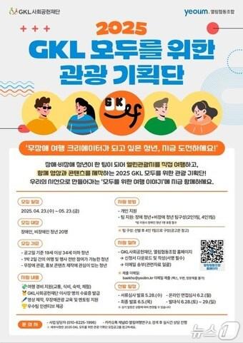 (서울=뉴스1) 윤슬빈 관광전문기자 = 그랜드코리아레저(GKL·114090)와 GKL사회공헌재단은 무장애 관광 콘텐츠 확산을 위해 '2025 GKL 모두를 위한 관광 기획단' 참가자를 다음 달 23일까지 모집한다고 23일 밝혔다.