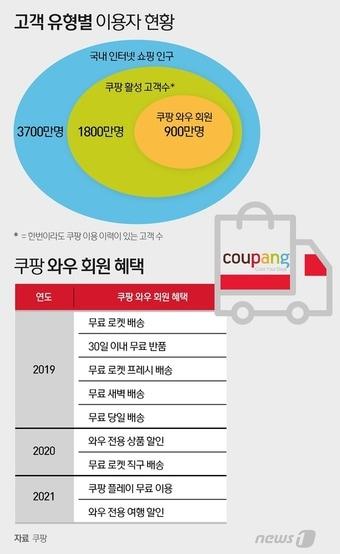 매출 20조 넘어서 쿠팡, 유료 멤버십 강화배송·OTT·할인 혜택 강화로 '록인 효과' 기대ⓒ News1 이지원 디자이너쿠팡이 지난해 연간 매출 22조원을 기록했다. 이는 창사 이래 최대 매출이자 국내 e커머스 역대 최대다. 사진은 3일 서울 송파구 쿠팡 본사모습. 2022.3.3/뉴스1 ⓒ News1 박세연 기자배지윤 기자 [속보] 쿠팡, 정보유출 1인당 5만원…1조6850억 규모 보상안 발표GS25, 내년도 상생지원안 발표…"가맹 경영주 수익 증진 방점"