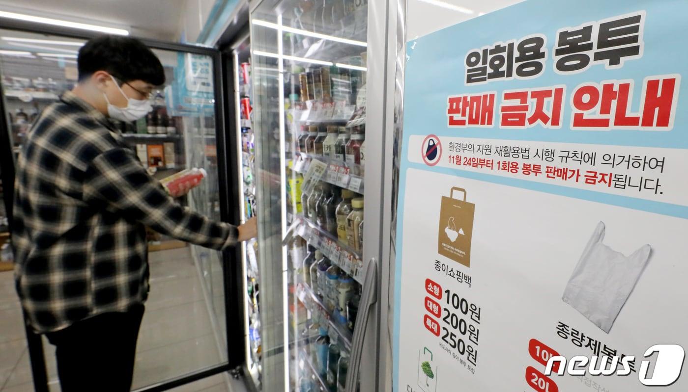 편의점, 계도기간 종료 전 소진 점주에 소진 안내일회용품 대책추진단 "업계 목소리 반영해 개선에 노력"서울 강남구의 한 GS25 편의점에 일회용 봉투 판매금지 안내문이 부착돼 있다. /뉴스1 ⓒ News1 장수영 기자서울의 한 커피전문점에서 음료가 일회용 플라스틱컵에 담겨 나오고 있다. /뉴스1 ⓒ News1 민경석 기자관련 키워드일회용품사용규제편의점커피전문점신민경 기자 '13월의 월급' 연말정산, 세액공제 똑똑히 알고 챙기자[단독]SY폴라리스 '안심클릭' 저작권 소송 패소…신한·삼성 등 카드사 유탄?