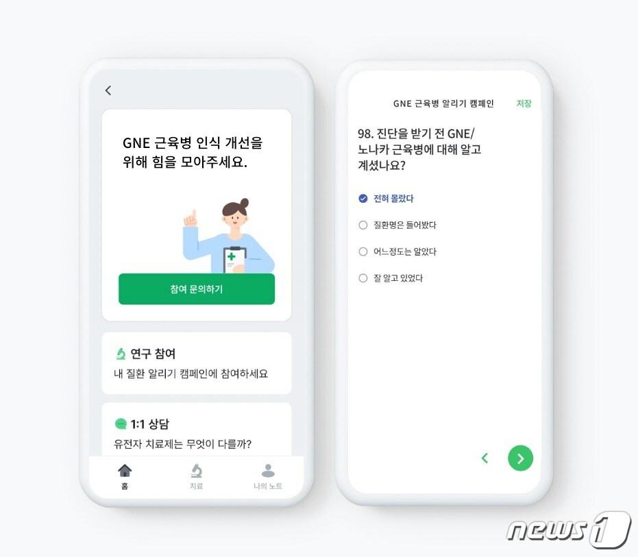 한국GNE근육병환우회와 협력…통합솔루션 '레어노트'로 정보 제공"올바른 치료 기회 확대에 기여할 것"희귀질환 통합솔루션 앱 '레어노트' 통한 GNE근육병 심층 건강설문.희귀질환 통합솔루션 앱 '레어노트' 통한 GNE근육병 심층 건강설문 결과.