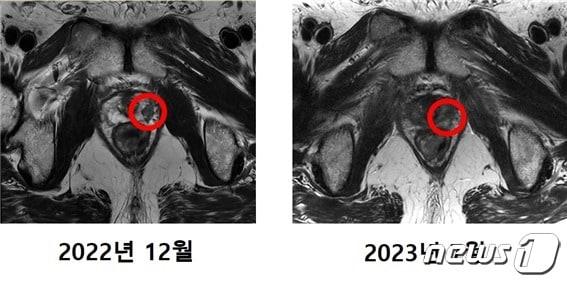 전립선암 2기 환자, PSA 수치 줄고 MRI상 암 조직 안 보여중입자 치료를 받은 최 모 씨(64)의 MRI 촬영 사진. 기존에 발견됐던 암 조직(왼쪽 사진 표시)이 치료 후에는 발견되지 않았다. (연세암병원 제공)관련 키워드중입자치료전립선암연세암병원세브란스병원천선휴 기자 "건강 정보요? 뭐하러 헤매요, 여기 진짜가 싹 다 나오는데"우울증 진단 받아도 "병원 안 가요"…3주 이내 재방문율 42%관련 기사'꿈의 암치료' 양성자·중입자 눈독 들이는 병원들…장단점 달라국내 유일 3대 중입자치료기 가동…난치암 공략 본격화