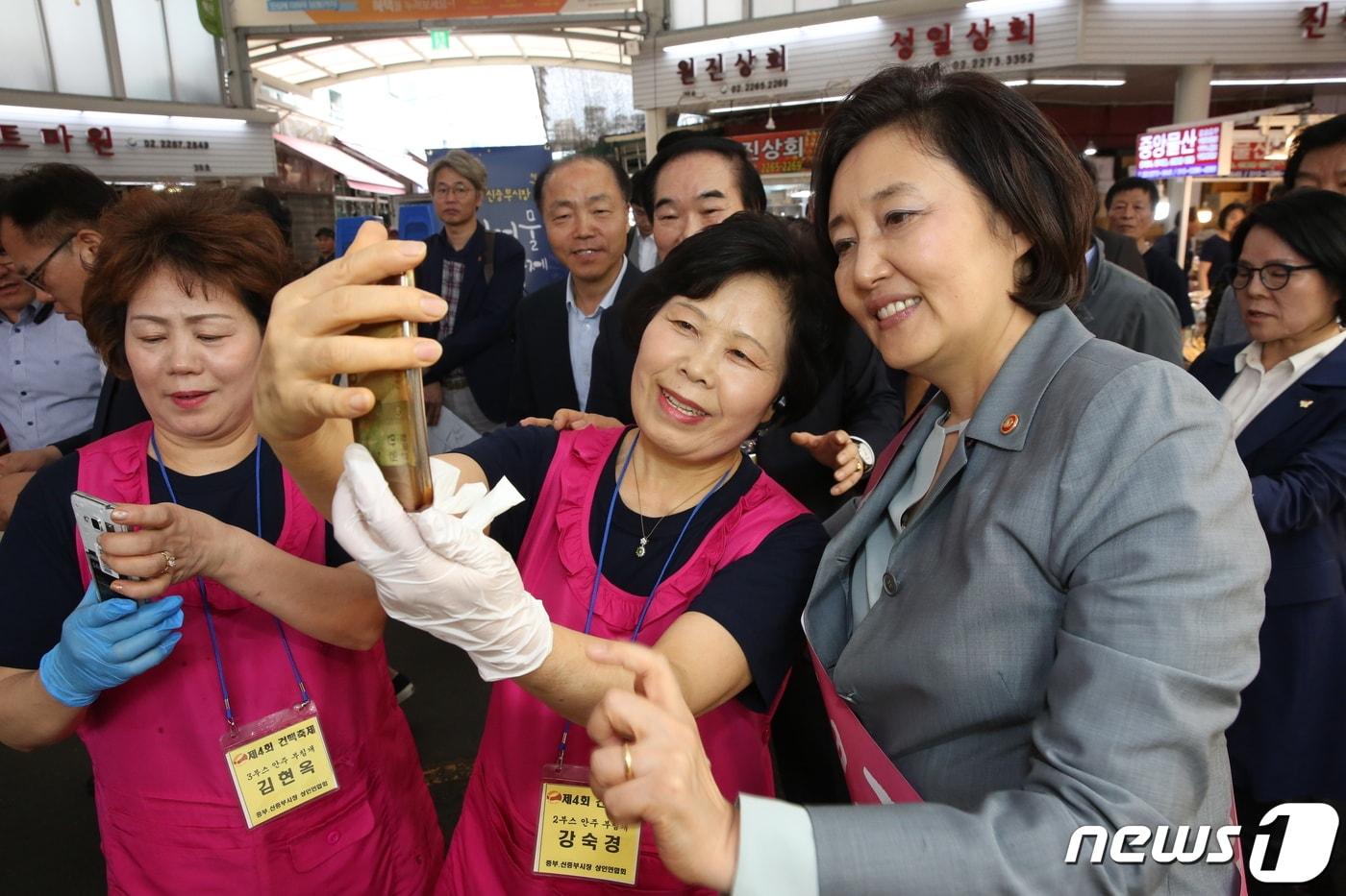 일자리 창출 모범 현장방문…"청년 구직자 적극 연결"경기 화성 병점 상점가 상인들 애로·건의사항도 청취박영선 중소벤처기업부 장관이 9월20일 서울 신중부시장을 방문, 시장 상인과 기념촬영을 하고 있다. (중소벤처기업부 제공) 2019.9.20/뉴스1심언기 기자 [속보] 靑, 尹 체포방해 1심 징역 5년에 "법과 원칙따라 진행될 것"[속보] 李대통령, 21일 신년 기자회견…영빈관서 90분간 진행