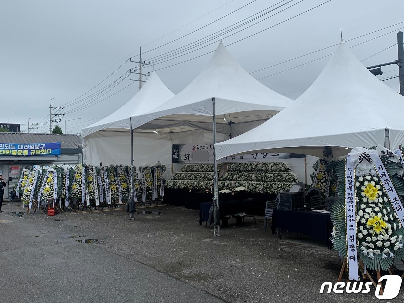 CJ대한통운 대리점연합, 택배노조 기자회견 반박"노조원들이 '택배 다시는 못하게 하겠다' 괴롭혀"CJ대한통운 김포A터미널에 마련된 김포장기대리점장 고(故) 이모씨(40)의 추모 분향소에 조화가 늘어서 있다. (CJ대한통운 택배대리점연합회 제공) ⓒ 뉴스1김태완 민주노총 서비스연맹 전국택배노동조합 수석부위원장이 2일 오후 서울 서대문구 서비스연맹에서 대리점 소장 사망에 대한 전국 택배노조의 조사결과를 발표하고 있다. 2021.9.2/뉴스1 ⓒ News1 이재명 기자CJ대한통운택배대리점연합회가 공개한 유족 입장문 ⓒ 뉴스1관련 키워드택배노조CJ대한통운윤다정 기자 도쿄전력 "후쿠시마원전 핵연료 반출 상반기 시작…2029년 완료"'알파고 아버지' 딥마인드 허사비스 "中 AI, 美와 불과 몇달 격차"관련 기사쿠팡 악재에 오히려 득본다?…"CJ대한통운, 내년 최대 이익도 가능""맞벌이는 어떡하라고"…'새벽배송 금지 반대' 국민청원까지전세버스업계 "새벽배송 중단시 운전기사·중소업체 생계 끊겨"쿠팡 택배기사 1만명 소속 단체 "10명 중 9명 새벽배송 금지 반대""중소제조·농민 직격탄"…중소기업 단체도 '새벽배송 금지' 반발