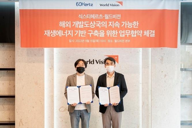 월드비전, 식스티헤르츠와 '개도국 재생에너지 기반 구축' 맞손