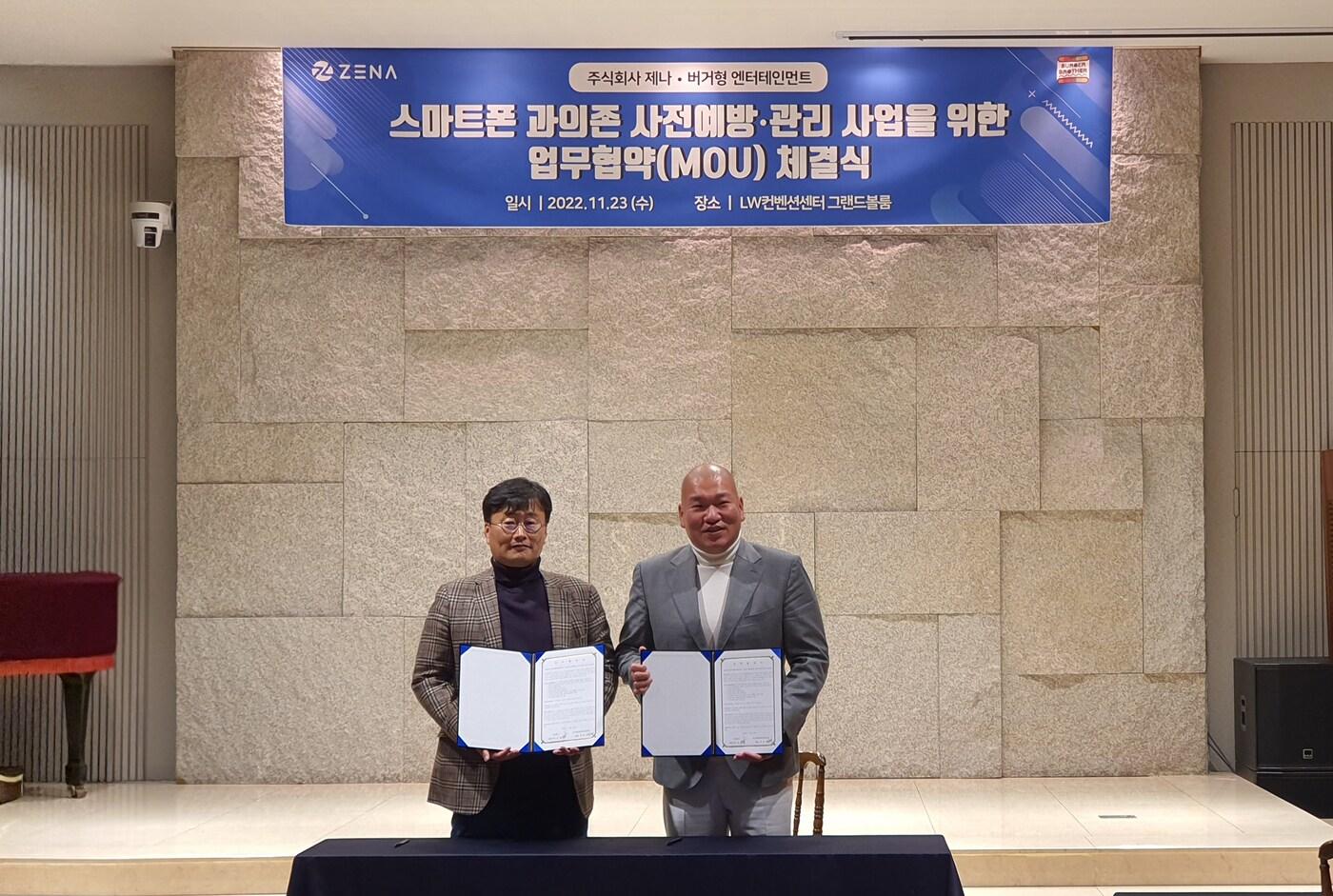 제나, 버거형 엔터테인먼트 ‘스마트폰 과의존 사전예방·관리 사업을 위한 업무협약(MOU) 체결(제나 제공)