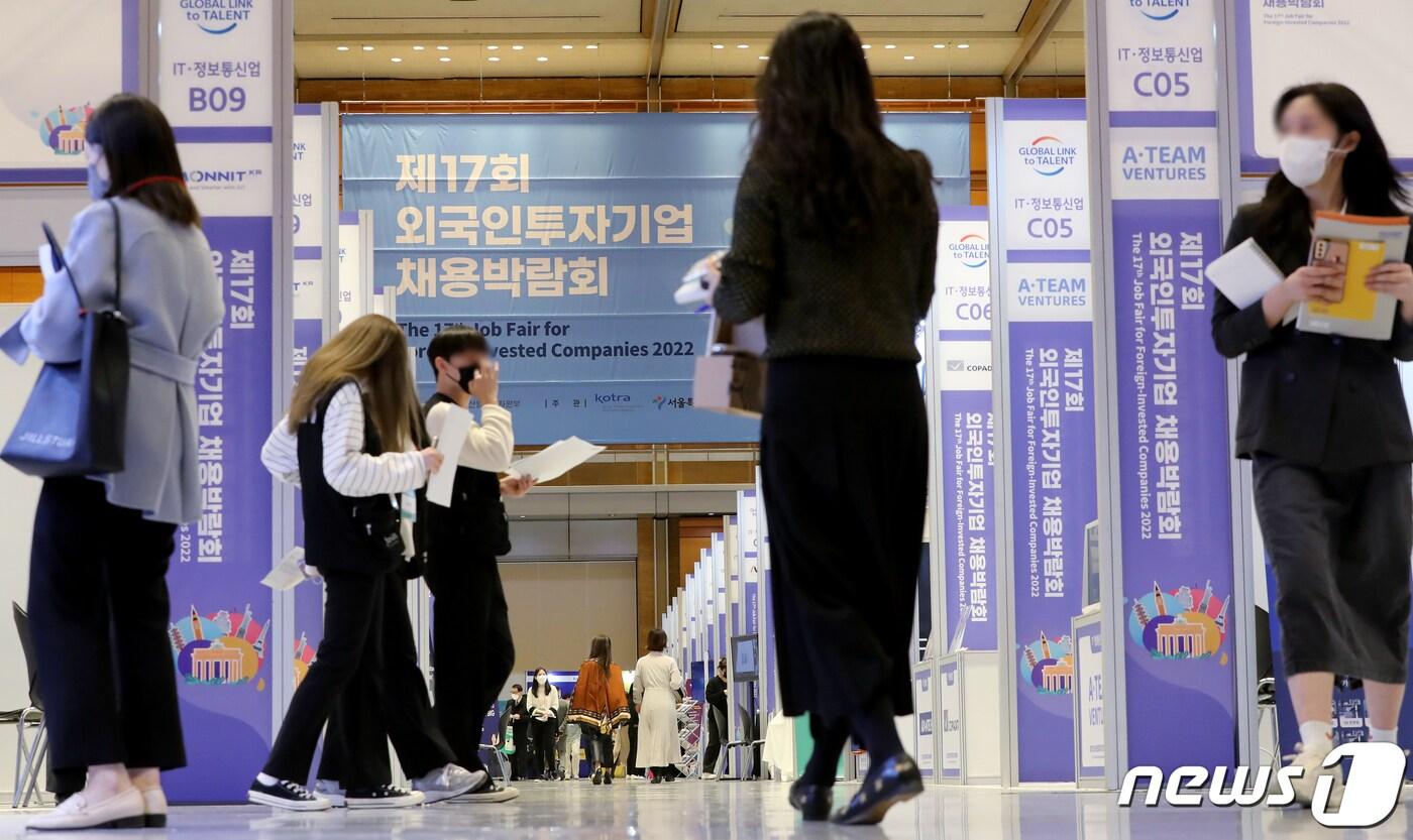 14일 서울 강남구 코엑스에서 열린 제17회 외국인투자기업 채용박람회에서 구직자들이 참여기업 부스를 둘러보고 있다. 2022.11.14/뉴스1 ⓒ News1 장수영 기자김민석 기자 살림하는 휴머노이드 '네오' 출격…원격조종→자율행동 진화전략"메타로 사명까지 바꿨는데…리얼리티랩스 인력 10% 감축"
