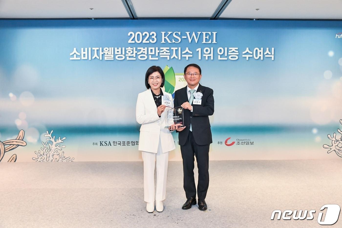 선혜영 에몬스가구 원장(왼쪽)과 강명수 한국표준협회 회장이 기념사진을 찍고 있다.(에몬스 제공)