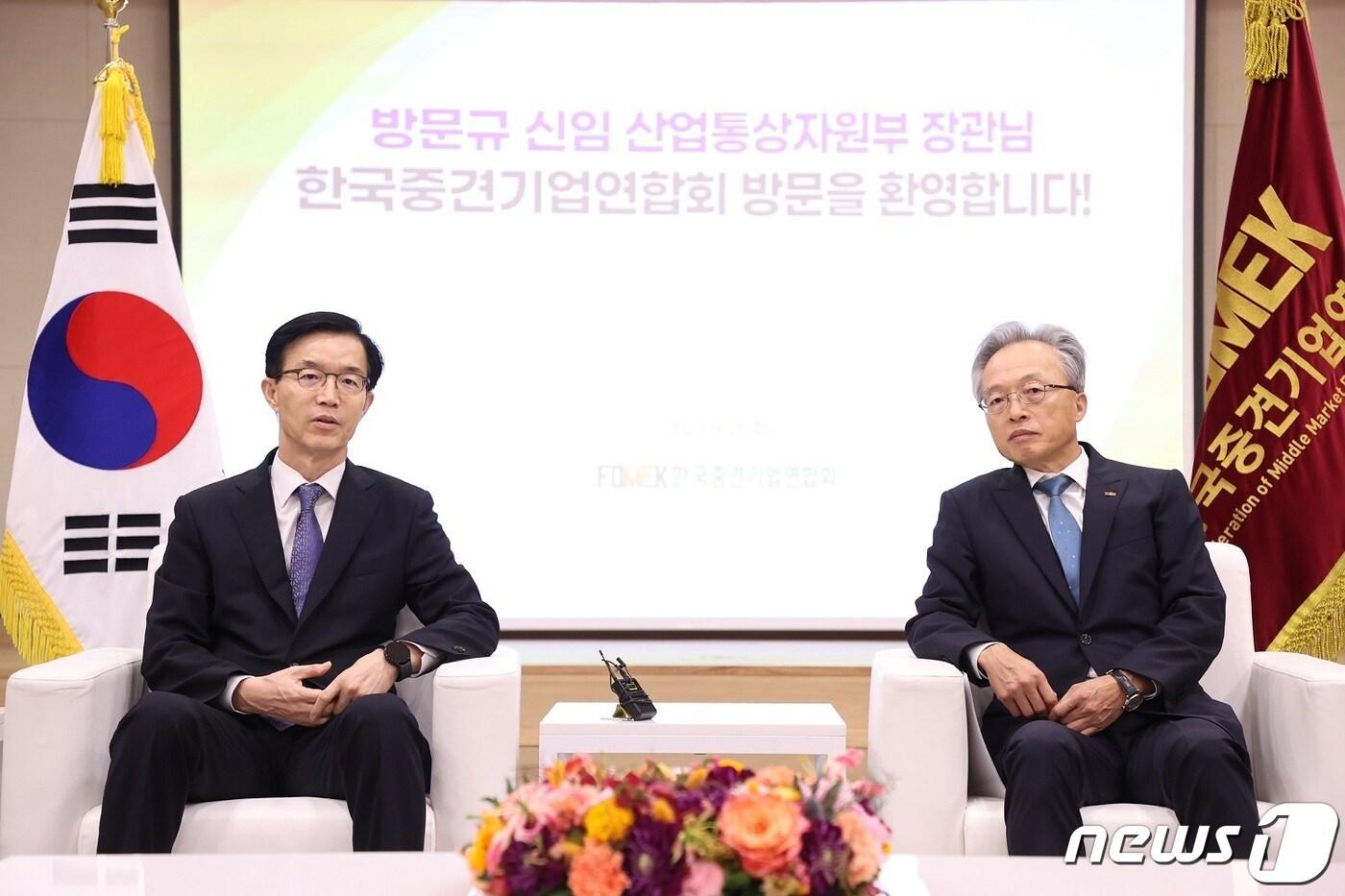 방문규 산업통상자원부 신임 장관 만나 면담방 장관, 중견기업 맞춤형 지원 약속최진식 한국중견기업연합회 회장과 방문규 산업통상자원부 장관(왼쪽)이 기념사진을 촬영하고 있다.(한국중견기업연합회 제공)관련 키워드한국중견기업연합회중견련방문규방문규산업통상자원부장관방문규장관이정후 기자 "자영업자도 AI 시대"…가게 운영 효율 확 높여주는 AI 서비스네이버·엔씨 제친 스타트업 연합군…"기술력으로 정면 돌파했다"