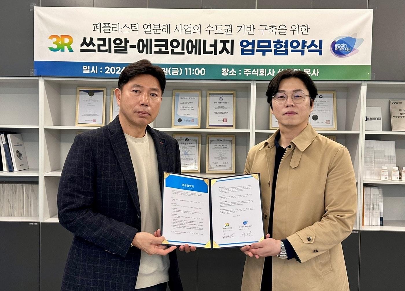 ㈜에코인에너지와 ㈜쓰리알이 폐플라스틱 재활용을 위한 업무협약을 체결했다. (좌측) 김태진 ㈜쓰리알 대표, (우측) 이인 ㈜에코인에너지 대표. 사진=㈜에코인에너지 제공장도민 기자 먹는 위고비, 주사만큼 빠질까…효과는 '공복 복용'이 좌우정부, 국가바이오위·바이오헬스혁신위 통합…AI 허가심사 단계 확대