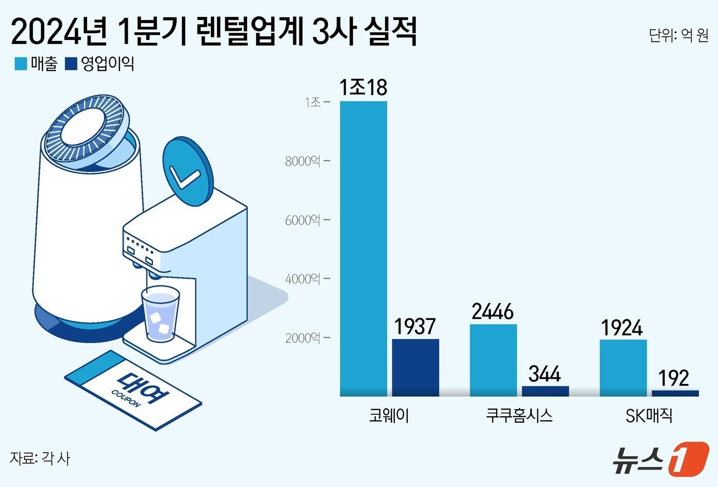 코웨이 4개 분기 연속 매출 1조원 달성…1분기 역대 최대쿠쿠홈시스, 일시불 판매 늘리고…SK매직 신시장 개척ⓒ News1 김지영 디자이너쿠쿠홈시스, 제로 100 슬림 끓인물 얼음정수기(쿠쿠홈시스 제공)SK매직 2024년 1분기 실적 요약(SK네트웍스 IR자료 갈무리)관련 키워드코웨이쿠쿠홈시스SK매직렌털업계렌털회사렌털기업이정후 기자 네이버·엔씨 제친 스타트업 연합군…"기술력으로 정면 돌파했다"대·중소기업 상생 성장 전략 마련…"모두의 성장 이끈다"관련 기사집집마다 정수기·비데 있는데…개인정보 제대로 보호 되는걸까"정수기 렌탈 끝나고 철거비?"…주요 렌탈 9개사에 개선 권고