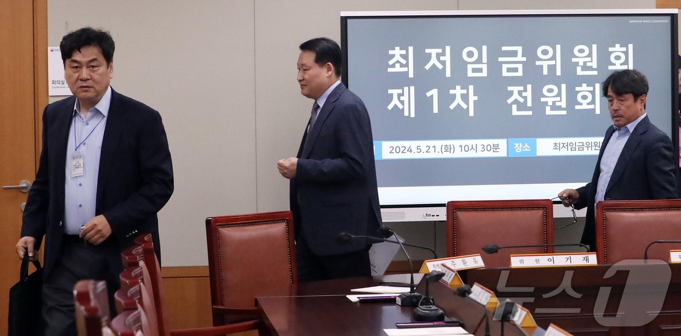세종시 정부세종청사에서 열린 최저임금위원회 제1차 전원회의에 이인재 위원장(왼쪽)이 참석하고 있다. 2024.05.21/뉴스1 ⓒ News1 김기남 기자