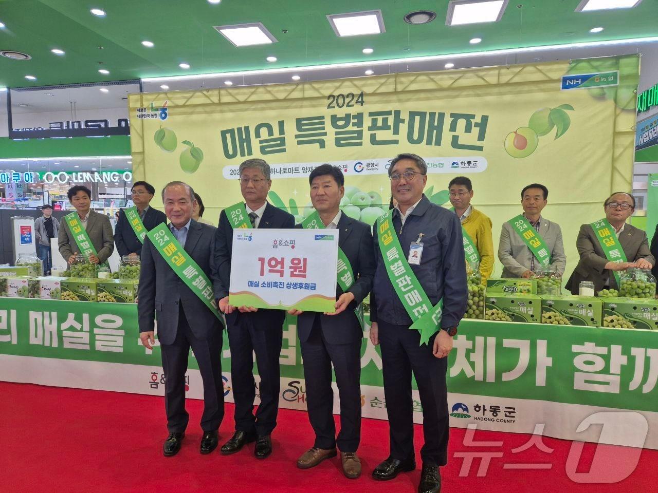 전국 하나로마트·산지 로컬푸드 직매장서 구입 가능이성한 홈앤쇼핑 본부장(왼쪽 두 번째)이 후원금을 전달하며 기념 촬영을 하고 있다.(홈앤쇼핑 제공)관련 키워드홈앤쇼핑대중소기업농어업협력재단매실농협하나로마트