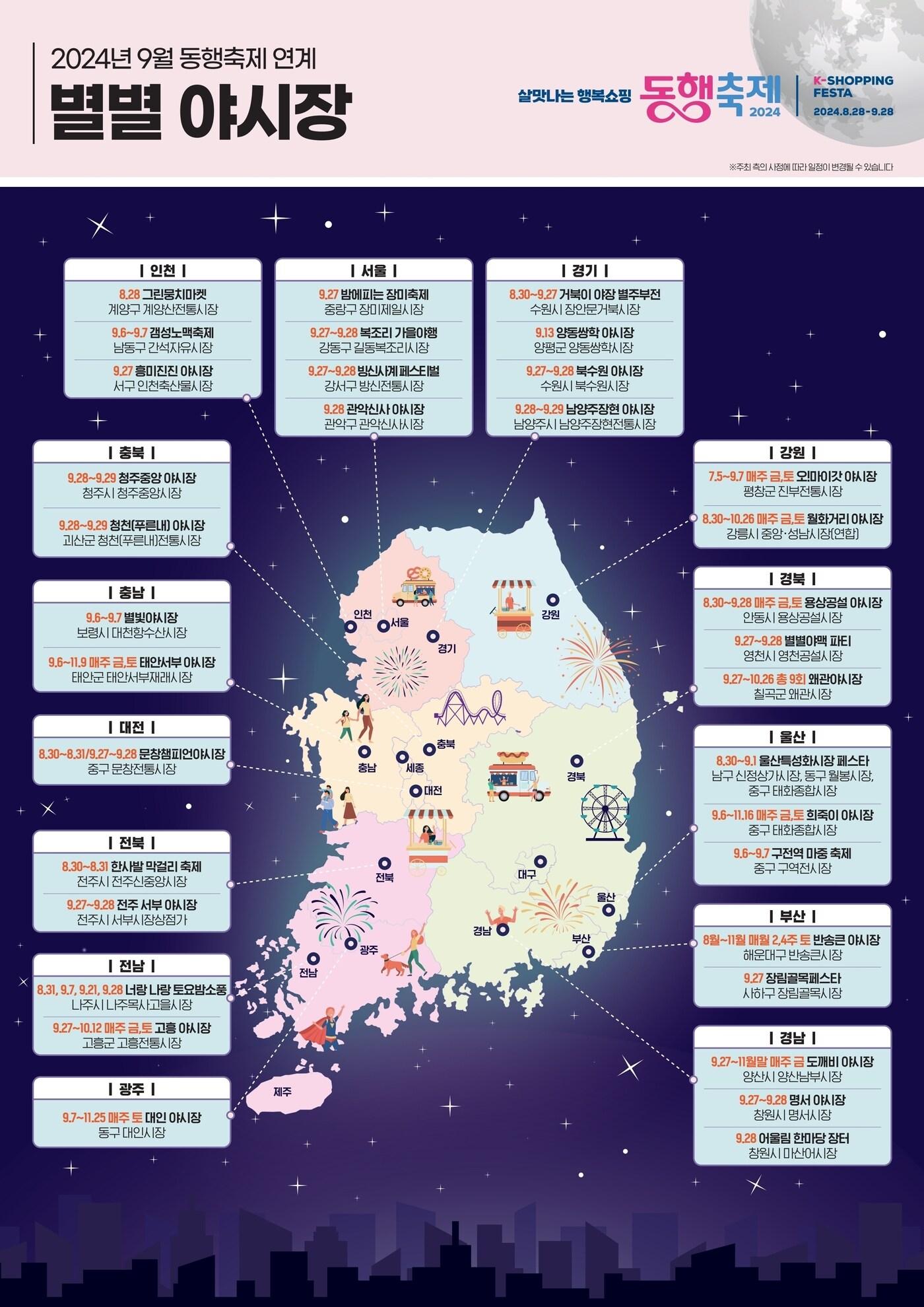 소상공인 행복상회·슈퍼마켓 할인전 등 전개해 소비자 참여 유도9월 4~18일 전국 500여 전통시장 참여하는 '온라인 특별전' 개최소상공인시장진흥공단 제공관련 키워드동행축제9월동행축제소진공중기부중소벤처기업부박성효퍼스트클럽정책장도민 기자 CDMO 투자전쟁 2라운드…삼성·SK·롯데, 올해 '제조 패키지' 경쟁현대바이오, 호흡기 바이러스 질환 바스켓 2상 FDA 신청한다