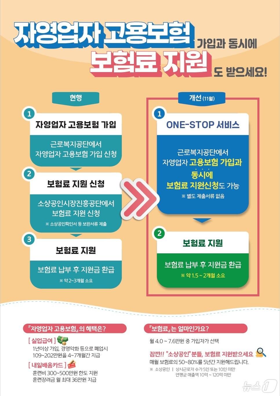 중기부·고용노동부, 보험 가입과 보험료 지원 신청 창구 통일'자영업자 고용보험' 원스톱 서비스 (중소벤처기업부 제공)관련 키워드중소벤처기업부고용노동부자영업자고용보험퍼스트클럽정책장시온 기자 바디프랜드 2025년 베스트셀러는 '팔콘S'"'한샘다움'으로 기업문화 재정립…투명경영 실천"관련 기사내년 로컬창업가 1만개 발굴…'코그페' 키우고 소상공인 모니터링'100만 폐업' 막기 위해 위험 조기발굴·선제대응 한다(종합)자영업자도 고용보험 혜택 받도록…연 7만명 규모 지원 확대'100만 폐업' 울분 토한 자영업자들…한성숙 "매주 만나자"(종합)망하고 폐업한 소상공인 '재기 지원 패스트트랙' 만든다