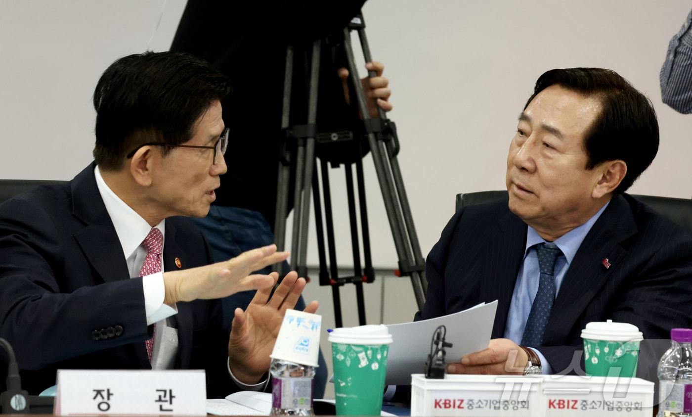 중기중앙회, 김문수 고용부 장관 초청 기업인 간담회 개최특별연장근로 활용 제고, 중대재해법 처벌방식 개선 건의중소기업중앙회는 17일 서울 여의도 중기중앙회에서 김문수 고용노동부장관 초청 중소기업인 간담회를 개최했다. (중기중앙회 제공)중소기업중앙회는 17일 서울 여의도 중기중앙회에서 김문수 고용노동부장관 초청 중소기업인 간담회를 개최했다. (중기중앙회 제공)중소기업중앙회는 17일 서울 여의도 중기중앙회에서 김문수 고용노동부장관 초청 중소기업인 간담회를 개최했다. (중기중앙회 제공)관련 키워드중소기업중앙회중기중앙회김문수고용노동부주52시간퍼스트클럽정책이민주 기자 티오더, 현장 지원 체계 강화…"주말·심야에도 상담 가능"'중기 AI 전환' 내건 중진공, 'AX혁신실' 콘트롤타워 세웠다관련 기사오늘 대선 "새 대통령, '경제' 살리려면 중소기업부터 살려야"중소기업이 '허리'라면서…또 고개 든 '중기·산업부' 통합론"중기중앙회 패싱인가"…李·李 후보 중기계 발길 '뚝'"대한민국 기업 90%가 중소기업인데"…대선판서 잊힌 中企'D-19' 이재명은 '텃밭' 호남…김문수·이준석은 '서울' 누빈다