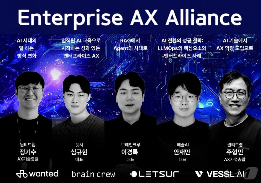 엔터프라이즈 AX 얼라이언스 발족원티드랩·렛서·브레인크루·베슬AI 참여원티드랩, 기업의 성공적 AX(인공지능 전환) 지원을 위한 '엔터프라이즈 AX 얼라이언스' 발족(원티드랩 제공)관련 키워드원티드랩엔터프라이즈AX얼라이언스렛서브레인크루베슬AI회원사소식이정후 기자 삼쩜삼, 동생 스타트업 발굴한다…서울대와 맞손'수수료 2%' 장착한 카페24 PRO, 올해 수익화 본격 시동