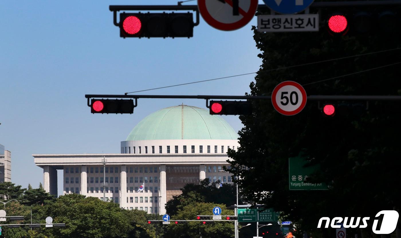 서울 여의도 국회의사당 앞 교통 신호등이 일제히 빨간불을 가리키고 있다. (공동취재) 2022.9.2/뉴스1 ⓒ News1 이재명 기자