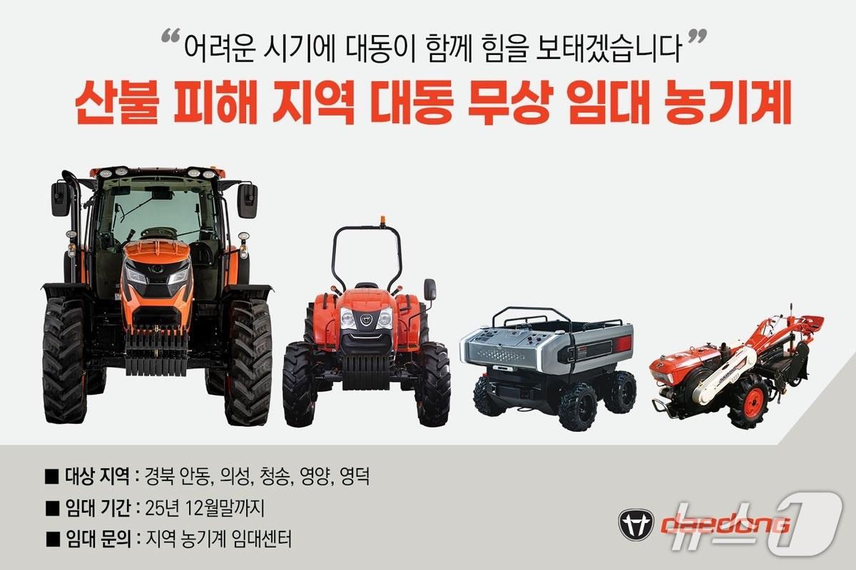 트랙터·운반로봇·경운기 무상 임대대동, 경북 산불 피해 지역에 농기계 49대 무상 임대(대동 제공)관련 키워드대동산불피해대동농기계지원대동농기계무상임대대형산불회원사소식이정후 기자 네이버·엔씨 제친 스타트업 연합군…"기술력으로 정면 돌파했다"대·중소기업 상생 성장 전략 마련…"모두의 성장 이끈다"관련 기사국내 4대 농기계사, 경북 산불 피해농가 지원…트랙터 등 79대 투입