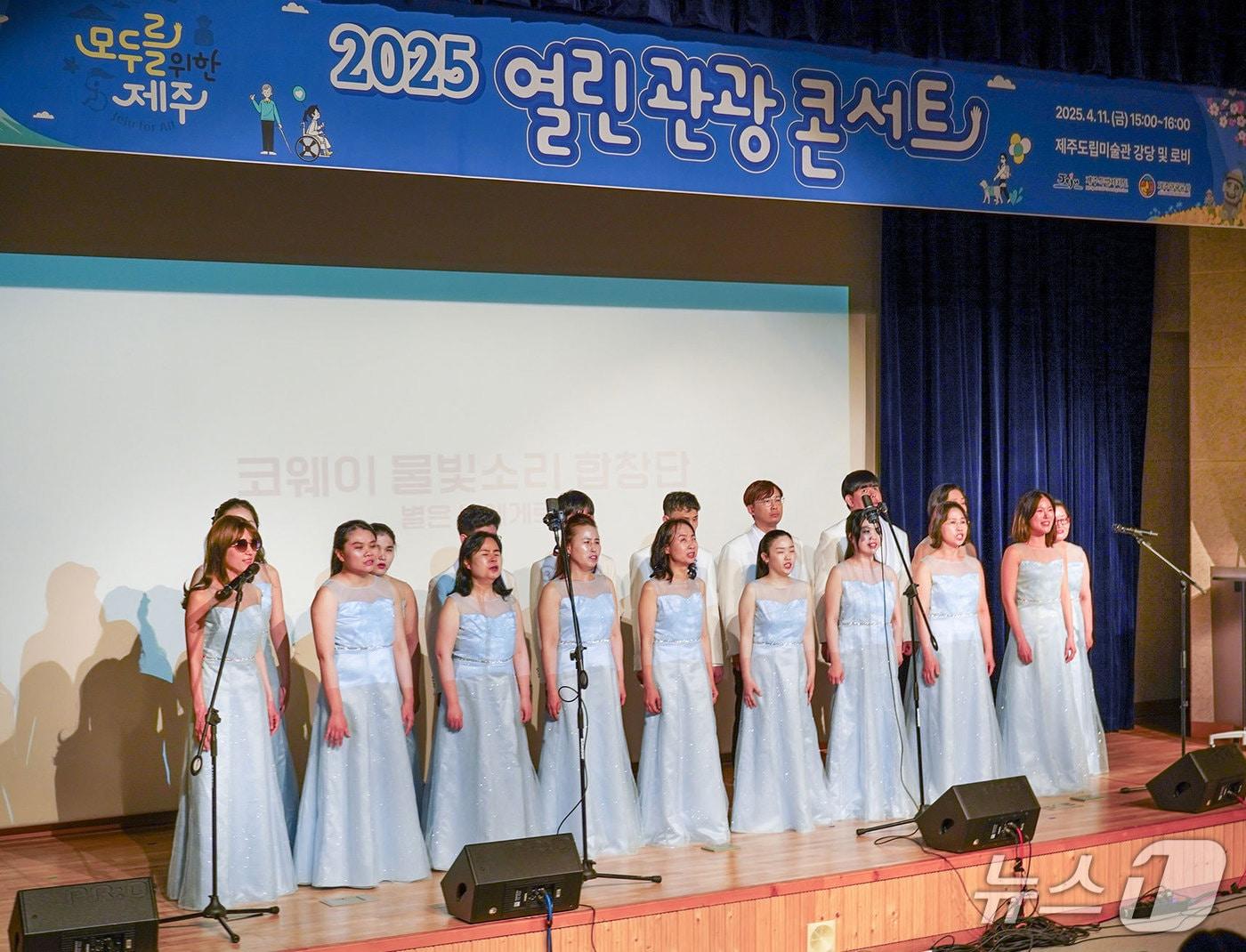 중증 시각 장애인 합창단…관광 약자 행사서 공연 선봬코웨이 물빛소리 합창단이 '2025 모두를 위한 제주, 열린 관광 페스타' 개막 공연을 펼치고 있다.(코웨이 제공)관련 키워드코웨이회원사소식물빛소리합창단열린관광페스타제주도