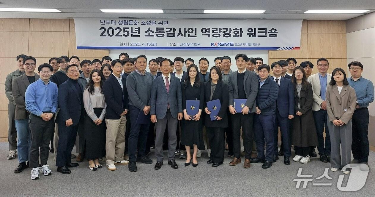 역량강화 워크숍 개최…감사 사항 발굴 등 활동 목표 공유이흥범 중소벤처기업진흥공단 상임감사(앞줄 왼쪽 6번째)와 소통감사인 관계자들이 기념촬영을 하고 있다.(중소벤처기업진흥공단 제공)관련 키워드중소벤처기업진흥공단감사예방감사소통감사인중진공관련 기사'내부통제 부실·괴롭힘'…중기부 산하기관 줄줄이 질타(종합)여야, 중진공 질타…'尹탄핵 반대' 비상임이사·직원 횡령 지적'중진공 내부통제 부실' 강석진 이사장 사과 "기관장으로서 죄송"[오늘의 국감] 20일(월)설 맞아 전통시장 상인 만난 오영주…"어려움 극복에 역량 집중"