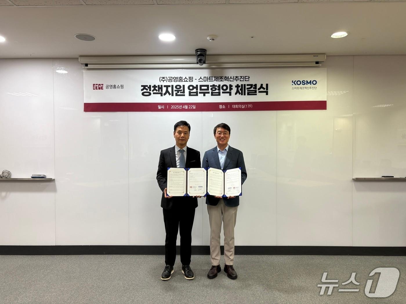 스마트제조혁신추진단, 스마트공장 판로 지원이종원 공영홈쇼핑 사업본부장(왼쪽)과 안광현 스마트제조혁신추진단 단장이 업무협약 체결 후 기념촬영을 하고 있다.(중소기업기술정보진흥원 제공)관련 키워드중소기업기술정보진흥원스마트제조혁신추진단공영홈쇼핑스마트공장퍼스트클럽정책이정후 기자 네이버·엔씨 제친 스타트업 연합군…"기술력으로 정면 돌파했다"대·중소기업 상생 성장 전략 마련…"모두의 성장 이끈다"관련 기사"홈쇼핑 입점 기회를"…스마트제조혁신사 코칭상담회 개최공영홈쇼핑, 스마트제조 中企에 '원스톱 판로' 지원