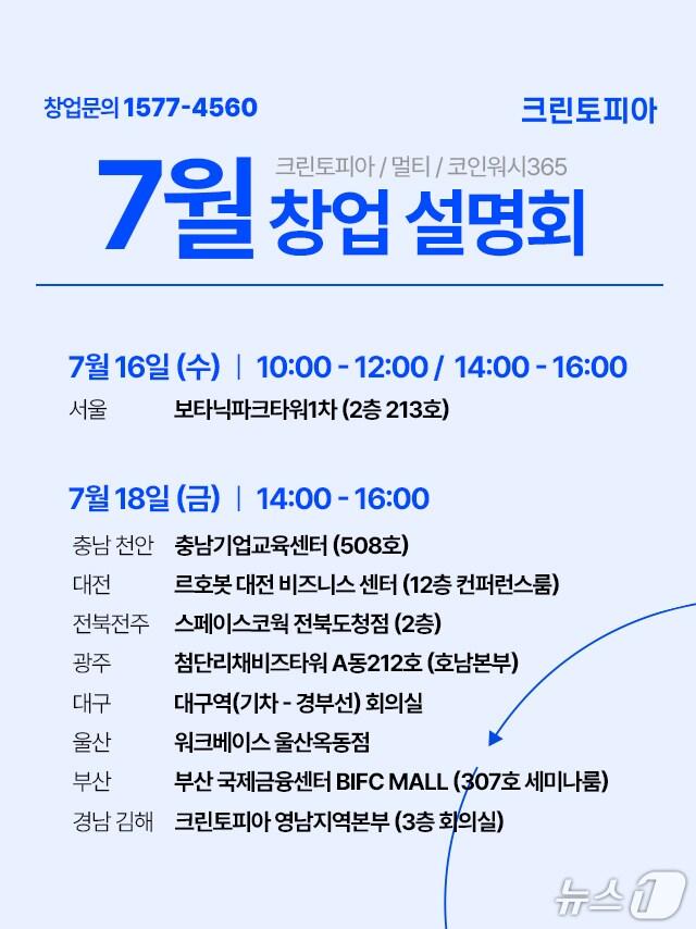 소자본 및 1인 창업 적합한 세 가지 사업 모델 제시크린토피아, 7월 창업설명회서 라이프스타일 맞춤 전략 공개(크린토피아 제공)관련 키워드크린토피아크린토피아창업설명회회원사소식이정후 기자 "2026년은 '혁신 골든타임'…벤처투자 혹한기도 점차 해소"송병준 벤처기업협회 회장 "도전 정신과 혁신으로 벤처붐 열자"관련 기사크린토피아, 충남·광주·전북·경북·경남서 '창업설명회' 연다"크린토피아로 안정적 수익 올리세요"…전국 창업설명회 개최