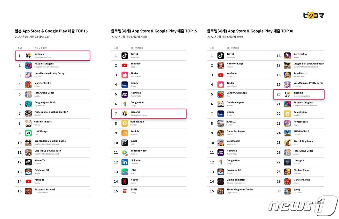 카카오 픽코마, 9월 日 매출 1위 앱 올랐다