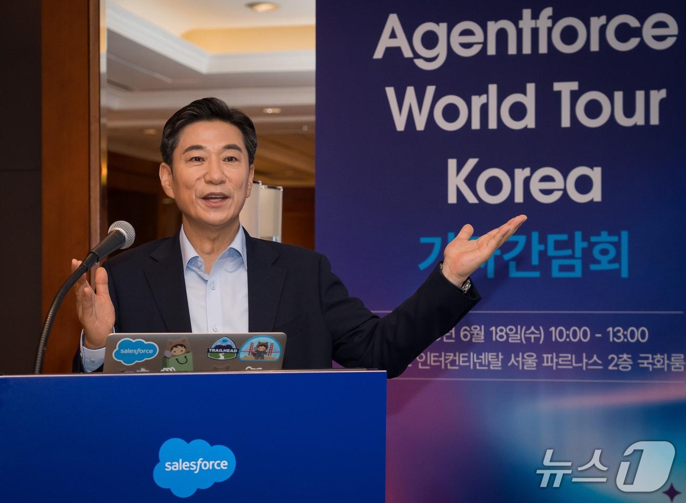 손부한 세일즈포스코리아 대표가 18일 삼성동 그랜드 인터컨티넨털 서울에서 열린 '에이전트포스 월드투어 코리아 2025 기자간담회'에서 "올해 3분기 내 자사 데이터클라우드인 에이전트포스 플랫폼이 한국 데이터센터에서 서비스할 예정"이라며 이같이 말했다.