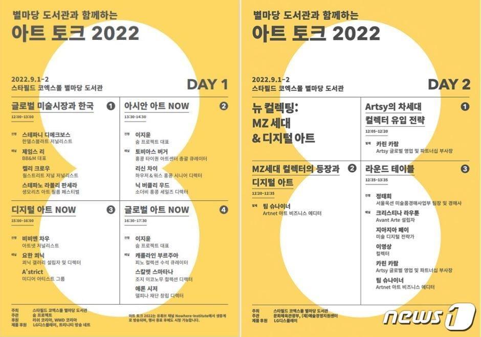 스타필드 코엑스몰 별마당 도서관 9월1~2일'아트 토크 2022' 프로그램(숨프로젝트 제공). ⓒ 뉴스1이지윤 숨프로젝트 대표(숨프로젝트 제공). ⓒ 뉴스1관련 키워드아트 토크이지윤숨프로젝트키아프프리즈김정한 기자 원경스님, 조계종 종단 직영 강화 보문사 주지 됐다"동시대 미술의 담론 형성과 소통"…국현, '작가-심사위원 대화' 개최